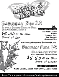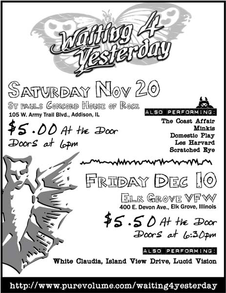Waiting 4 Yesterday is a local rock/punk band who now use this logo on t-shirts, stickers, and on CD's.